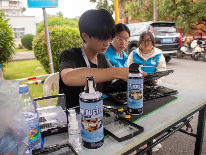 在志愿服务的现场,志愿者们凭借其精湛的技艺和周到的服务精神,为师生们提供了电脑风扇的细致清灰以及屏幕的专业清洁服务。此外,志愿者们还向师生们传播了关于电脑日常护理与保养的宝贵知识,提醒大家在使用电脑的过程中需注意防尘和散热的重要性,防止因灰尘积聚而引发的电脑故障问题。