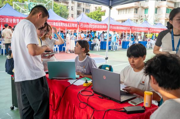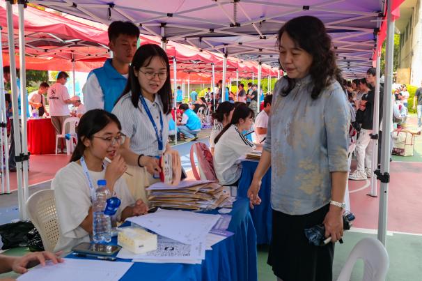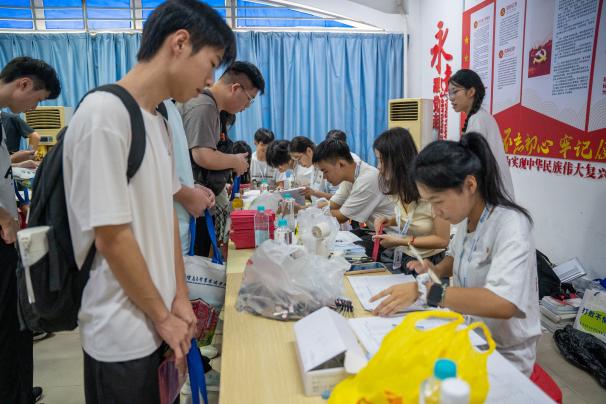 现场百余名校院两级志愿者身着统一服装,协助新生完成身份核验、宿舍引导等服务,耐心解答新生关于学业规划、生活服务等方面的疑问。