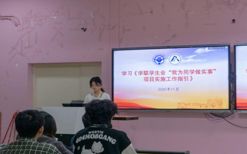 培训聚焦实践赋能,详细解读《学联学生会 “我为同学做实事” 项目实施工作指引》,结合学院专业特点,梳理出 “学业帮扶、社会实践、生活服务” 三大类实事清单。