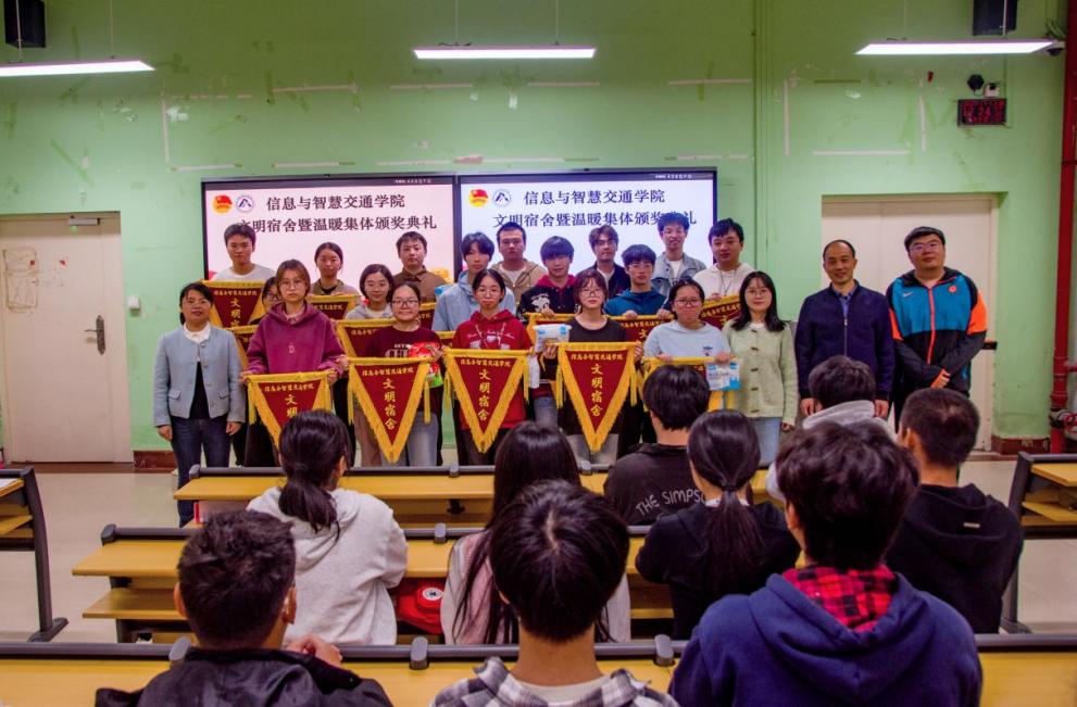 为进一步推进文明校园、和谐校园、平安校园创建,切实推动“温暖集体”建设工作落实落细,全面提高学生的自我管理能力和综合素质水平,11月13日,信息与智慧交通学院在福道园自强楼1-4教室举办2025-2026学年第一次文明宿舍暨温暖集体颁奖仪式。出席本次活动的有信息与智慧交通学院党总支副书记柳燕妮,辅导员代表,获奖宿舍学生和新生班级代表等。活动由信息与智慧交通学院自律会纪保部负责同学主持。