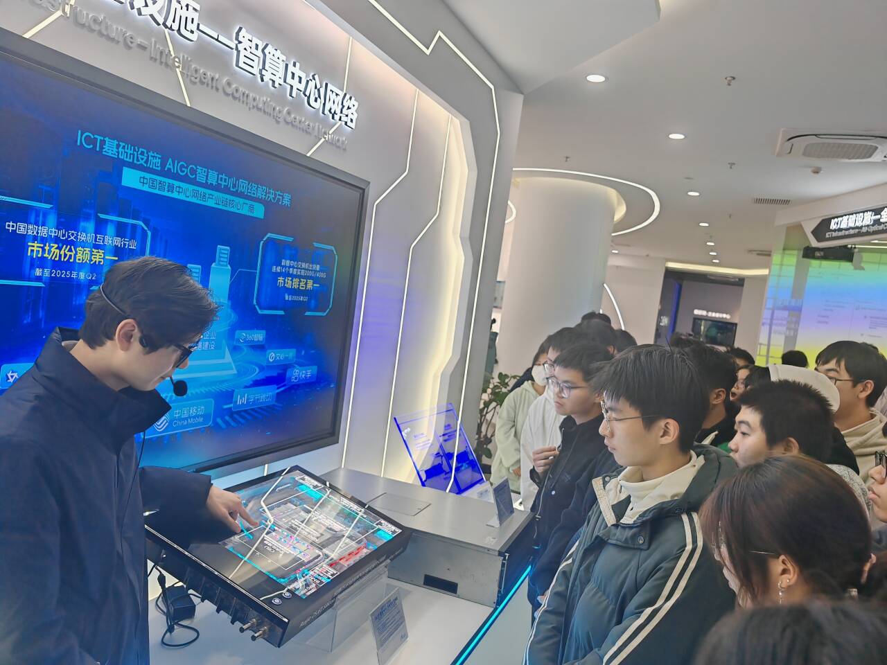 在企业技术专家与校内指导教师的协同带领下,同学们有序开展了研习活动。技术展示环节通过产品架构拆解、应用场景模拟与核心数据可视化,系统展示了信息技术在核心产品中的应用逻辑,使同学们对软件开发架构、数据传输协议等关键技术有了更深入的理解,也直观体会到信息技术推动行业数字化转型的实际路径。随后,同学们走进智能制造车间,实地观摩信息技术在工业场景中的具体应用,切身感受编程开发、系统集成与数据分析等专业知识在生产实践中的价值。