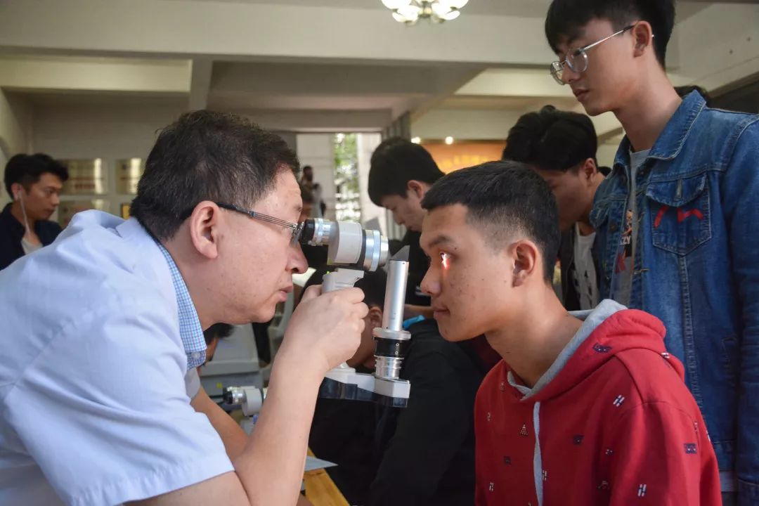 本次义诊不仅有量血压、测血型、刮痧、拔罐四项传统义诊项目,还另外开设了眼科保健,为同学们提供视力检查、眼表筛查、电脑验光、裂隙灯检查、清洗镜片、眼疾咨询、视力矫正措施、用眼保健指导等帮助。