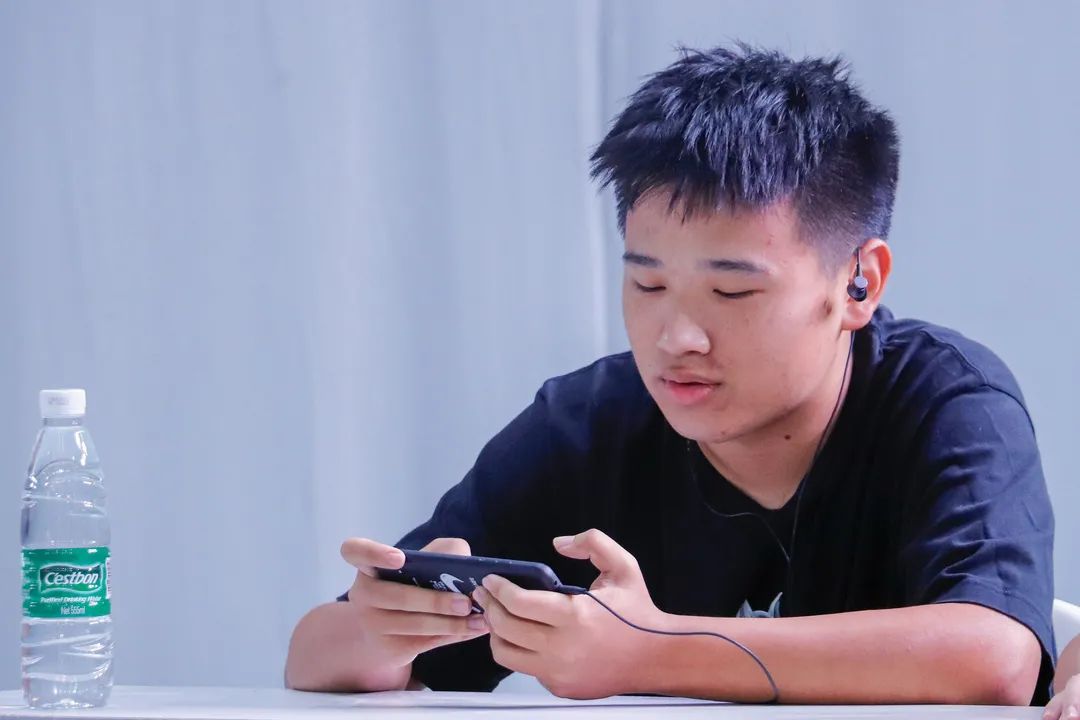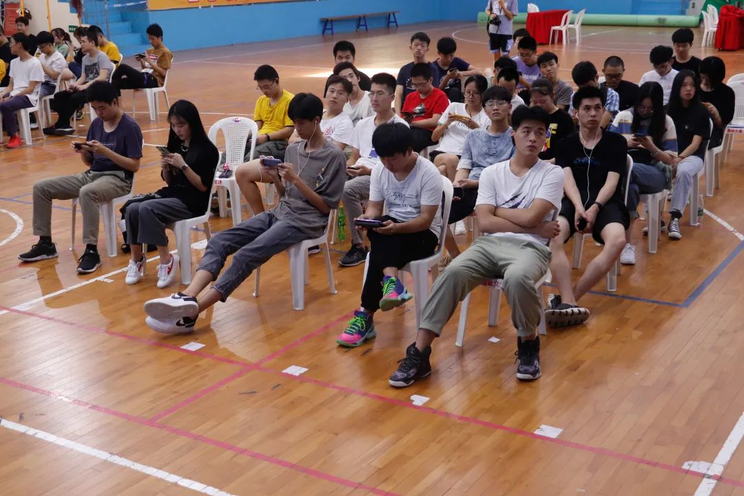 比赛现场座无虚席,大家的目光一致停留在比赛画面里。