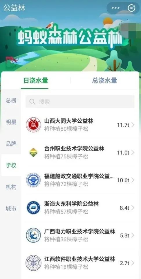 船政蚂蚁森林公益林行动还在继续,月月总浇水量排行前十名都可以获得奖品,月月都有惊喜。可以保存每月浇水截图以便获取三全育人平台活动开设的积分。(注:公益林浇水三全育人平台活动为每隔三个月开设一次(大家可以保存好每个月浇水量截图),每个月都可以浇水,献出浇水量越多,积分获取越多)和团团一起持续为学校公益林浇水!大家携手为地球增绿添彩!