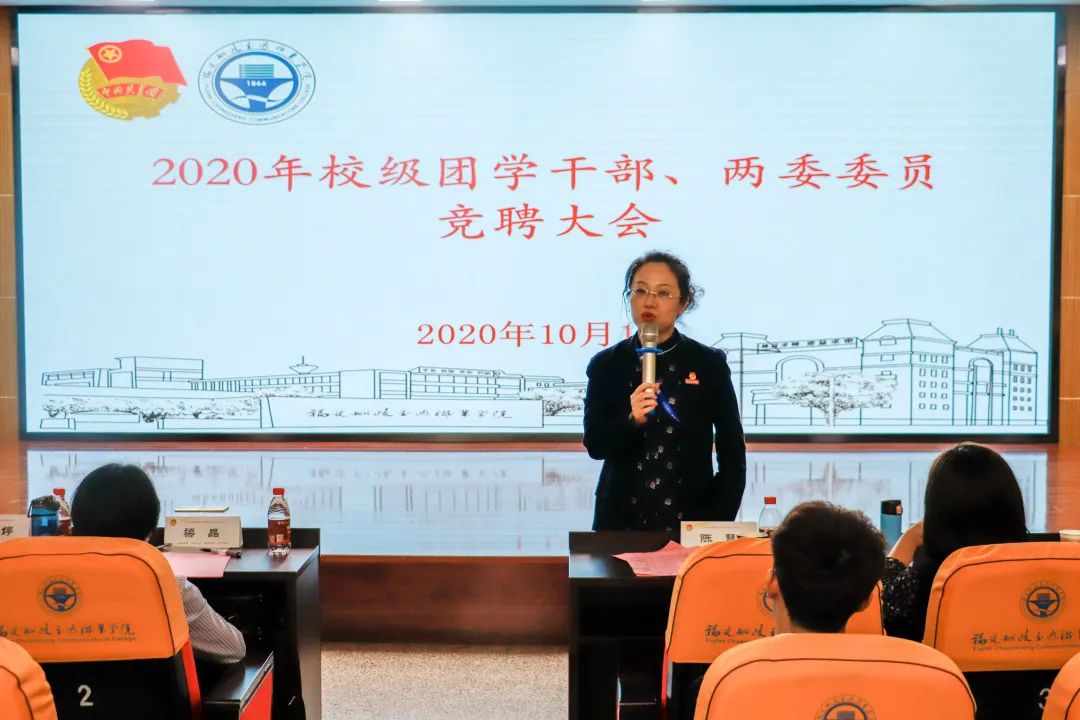 10月1日上午,“福建船政交通职业学院2020年校级团学干部、两委委员述职大会”在北区1号楼六楼会议室举行,校团委、党委学生工作部老师,2018级团学干部、两委委员及2019级团学干部竞聘候选人参加了本次会议。会议由校团委兼职学生副书记陈志东主持。