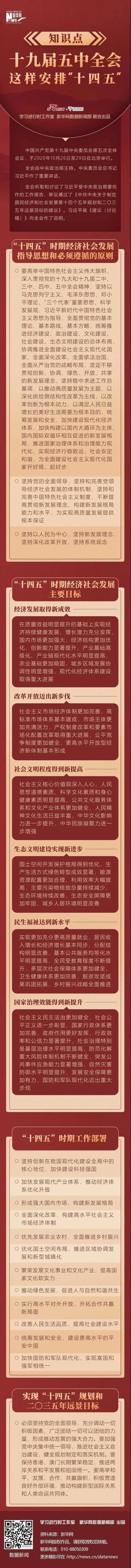 10月26日至29日,中国共产党第十九届中央委员会第五次全体会议在北京召开。会议审议通过了《中共中央关于制定国民经济和社会发展第十四个五年规划和二〇三五年远景目标的建议》,对二〇三五年目标、“十四五”时期经济社会发展作出了系统谋划和战略部署。这次全会是在即将实现第一个百年奋斗目标、开启全面建设社会主义现代化国家新征程的时刻召开的一次十分重要的会议。