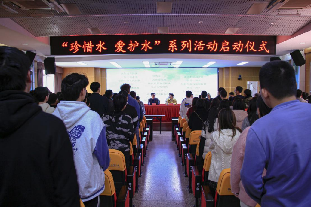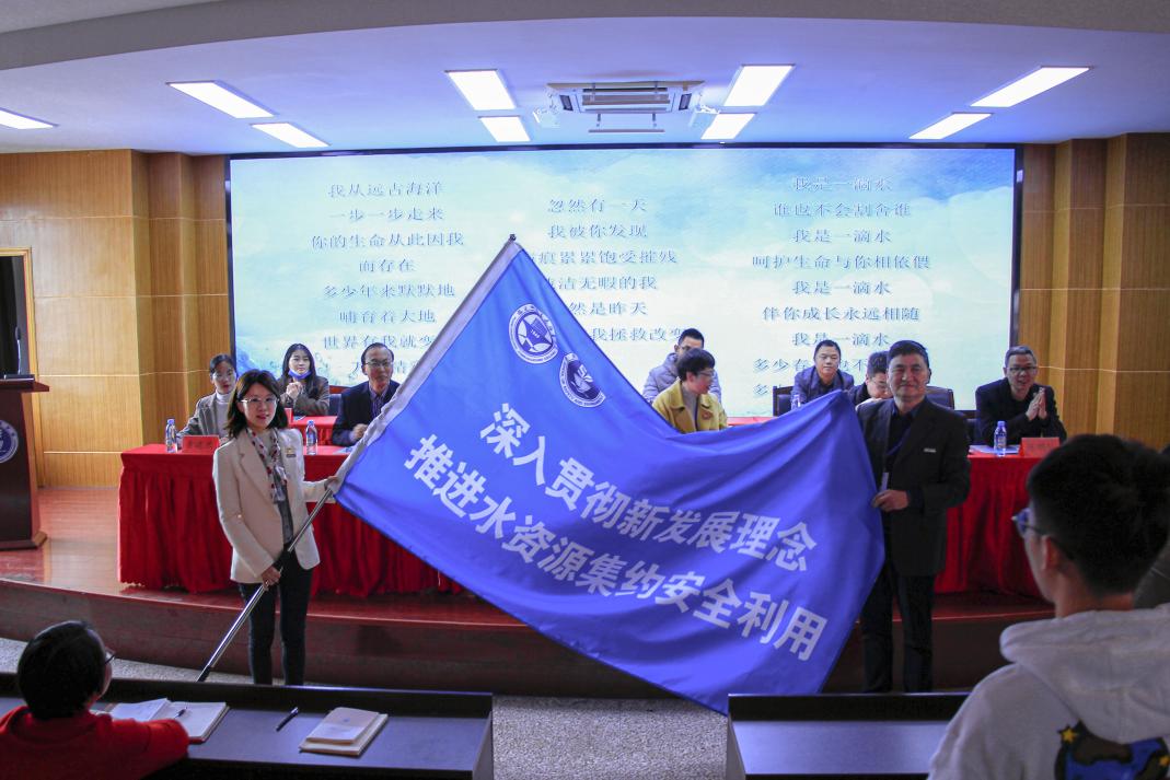 启动仪式上,由青年团员代表陈林琳同学宣读了《节水倡议书》,全体同学起立齐唱歌曲《我是一滴水》。同时,福建船政交通职业学院副院长高汝武为安全与环境学院举行了授旗仪式,通过庄严的仪式,向大家郑重宣告此次活动的意义,倡导践行绿色环保精神,切实推进水资源集约安全利用。