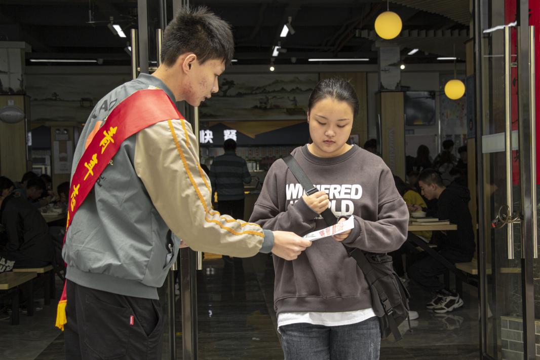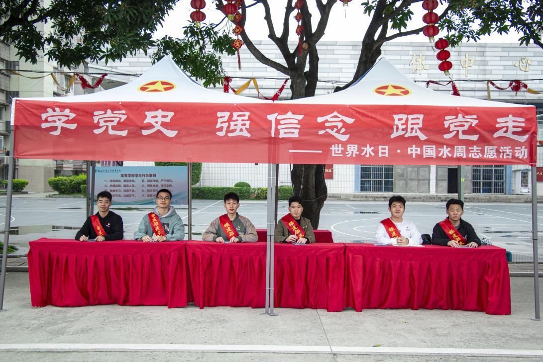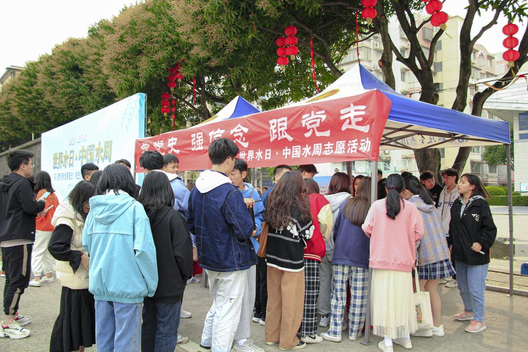 随后,在学院北区也开展了“学党史 强信念 跟党走”水知识有奖竞答、趣味节水小游戏等多个活动,参与互动的师生众多,现场气氛十分热烈。同时,青年志愿者在校内各食堂发放爱水护水知识传单,向全院师生广泛普及节水相关知识。