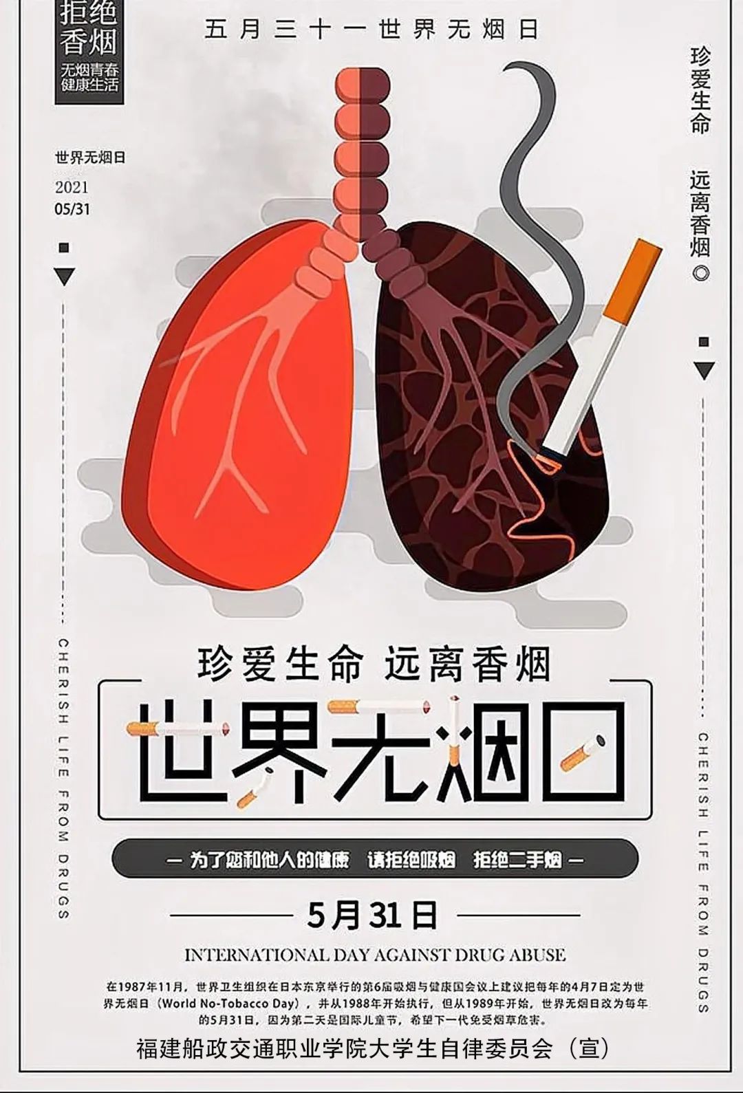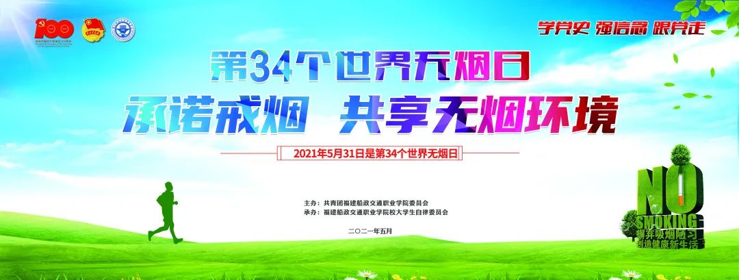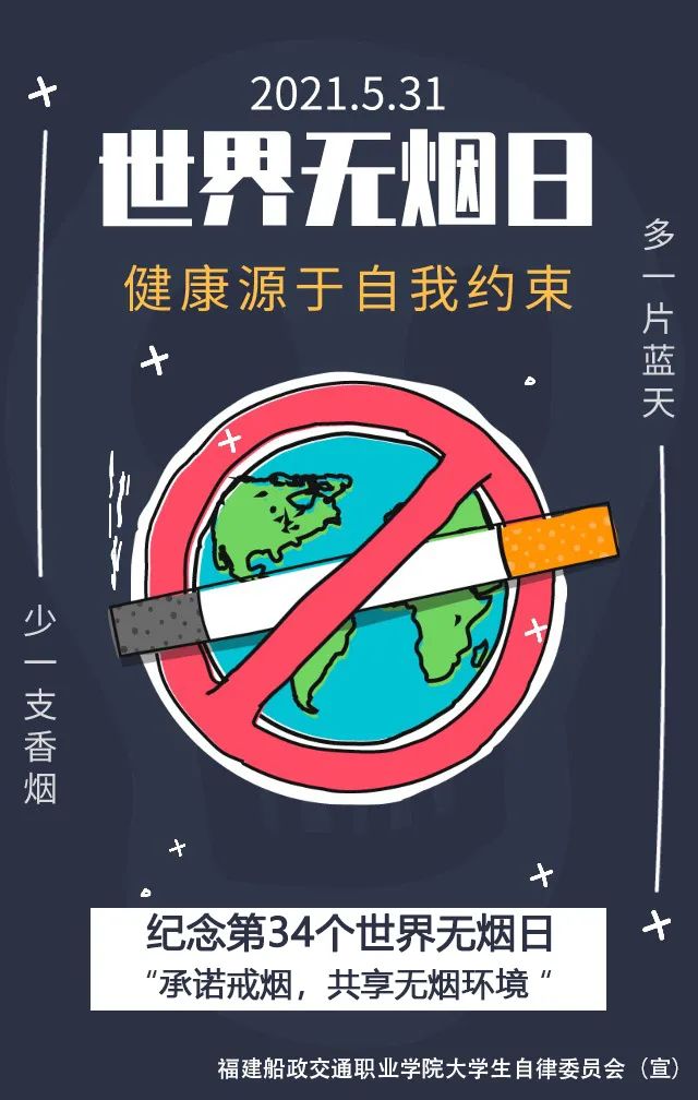 为推动党史学习教育深入开展,将学习成果转化为办实事、开新局的实际行动,动员更多师生参与和支持校园无烟事业,以优异成绩庆祝中国共产党成立100周年,在世界第34个世界无烟日到来之际,校大学生自律委员会举办“承诺戒烟 共享无烟环境”世界无烟日校园系列活动。