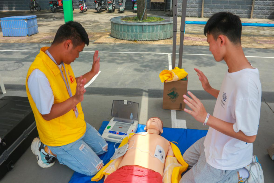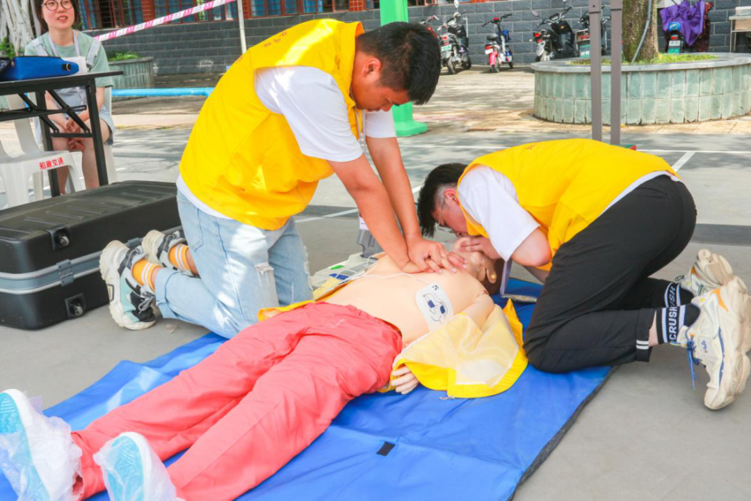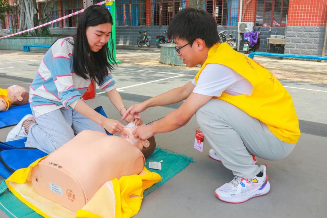 让急救知识进社区,关爱生命,守护健康。我校红十字会学生分会于5月12日开展“我为群众办实事—救在身边社区讲堂”急救知识进社区活动,提高社区居民急救意识,使他们学习基本的救护理论,能够利用宝贵的黄金时刻,及时、有效地开展现场救护,达到减轻伤残、挽救生命的目的。