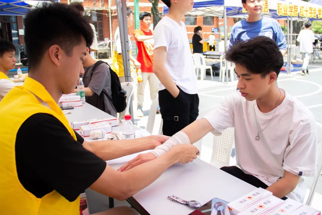 学习党史强信念,我为青年办实事。在第74个“世界红十字日”之际,我校红十字会学生分会于2021年5月9日在北区文体中心前篮球场举办“关爱生命、救在身边”纪念第74个世界红十字日的宣传活动,开设不同活动体验区,为师生开展应急救护知识技能的现场教学;健康义诊——视力查询、口腔牙齿检查。