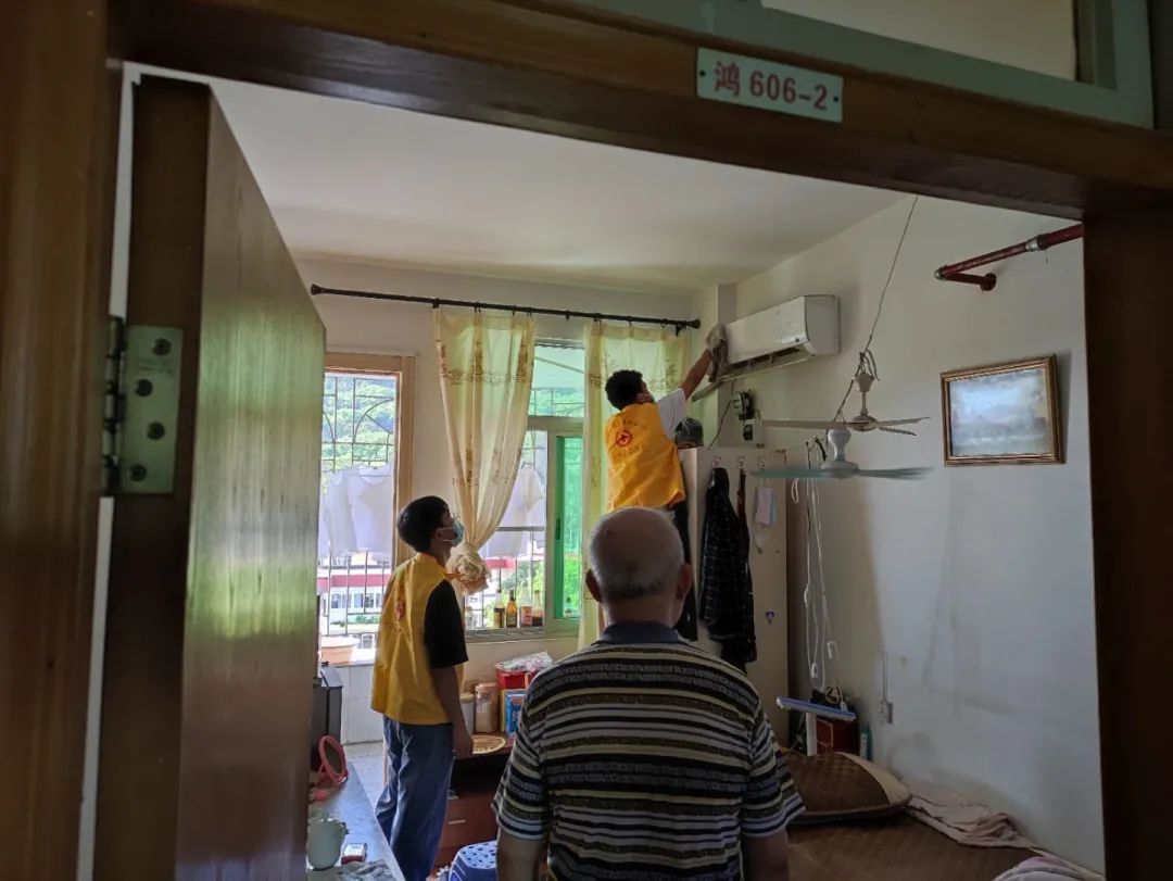 学党史,悟思想,办实事,将所学所得转化为实际成果,我校红十字会学生分会于5月16日早上开展“青春志愿心向党,我为老人送温暖”鸿儒养老乐园志愿服务活动,为养老院的老人们送温暖,做些力所能及的事——为他们收拾房间,整理衣物,清洗风扇、空调滤网等。青春的路上,因有无私奉献,更有色彩。