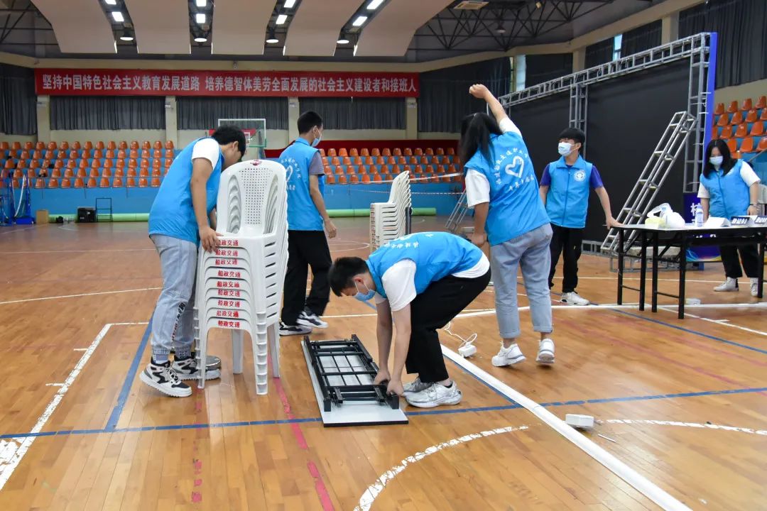 志愿者们前期认真打扫卫生、擦洗桌椅、布置会场,为接种疫苗营造一个安全、整洁、有序的接种环境。