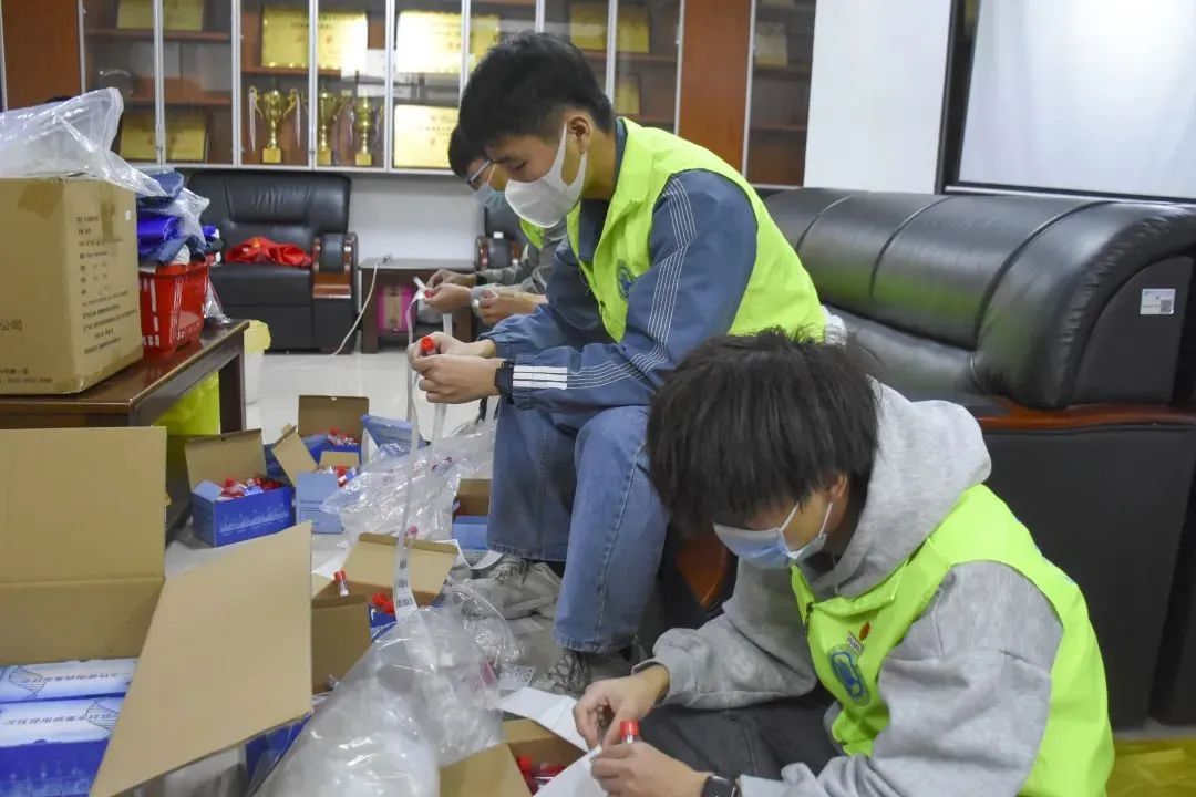 志愿者们为学校防疫工作中