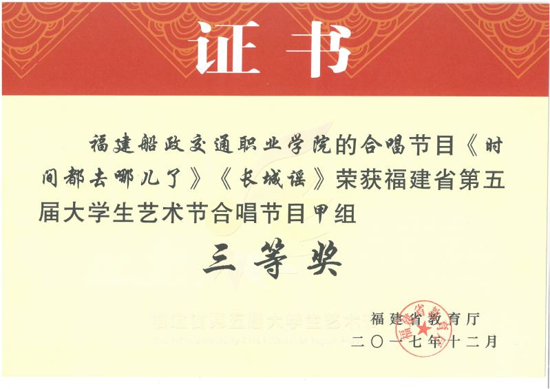 《时间都去哪儿了》《长城谣》获福建省第五届大学生艺术节合唱节目甲组三等奖