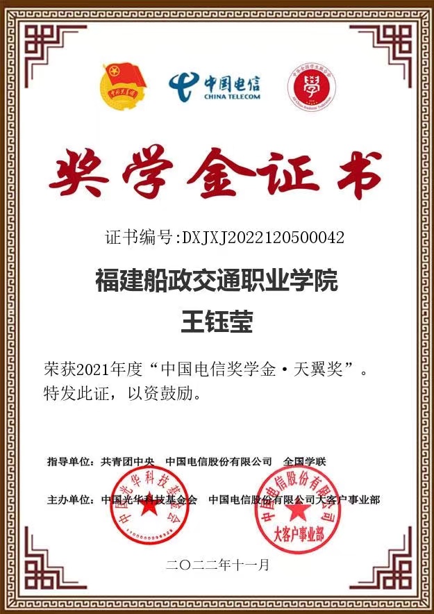 2021年度“中国电信奖学金.天翼奖”-王钰莹