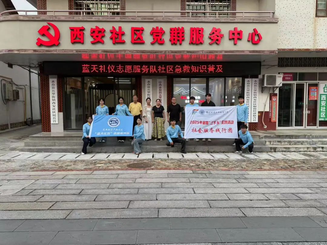 乡村振兴,健康先行。作为通用航空产业学院的学子,“蓝天礼仪志愿服务队”深知专业知识不止能逐梦蓝天,更可扎根土地守护安康。带着“急救护航,青春同行”的使命,走进西安社区,开展急救科普活动。志愿者们通过理论讲解、实操演示,为社区居民系统传授心肺复苏、海姆立克急救法,使用AED除颤器等关键技能 。在模拟实操环节,大家围聚在人体模型旁,志愿者一对一指导,纠正按压姿势、频率,确保居民掌握规范动作。从判断意识、呼救,到精准施救,每一步都讲解细致。