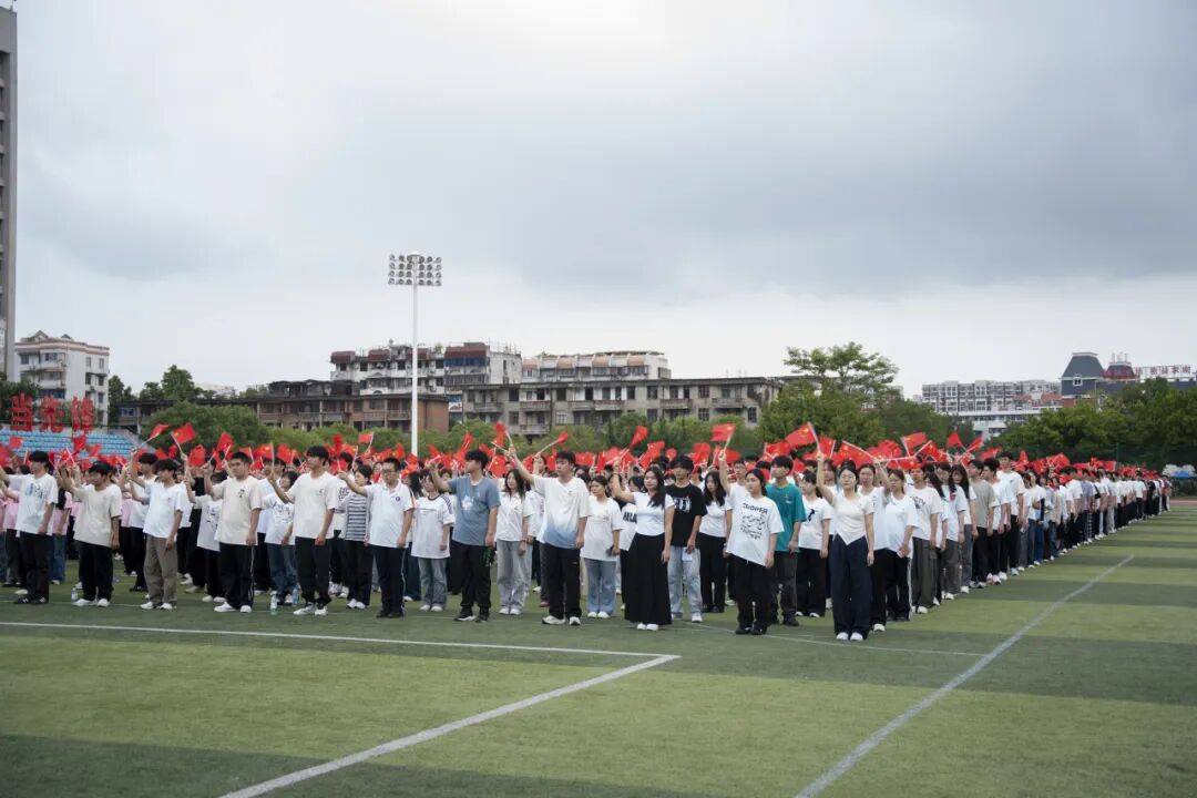 国歌余韵尚在校园回荡,师生们已高举国旗,将满腔热忱化作铿锵呐喊:“青春为中国式现代化挺膺担当,强国复兴有我!强国复兴有我!强国复兴有我!” 嘹亮的口号,既是对祖国的深情告白,更将复兴征程上的青春誓言,牢牢镌刻在晨光里、心底间。