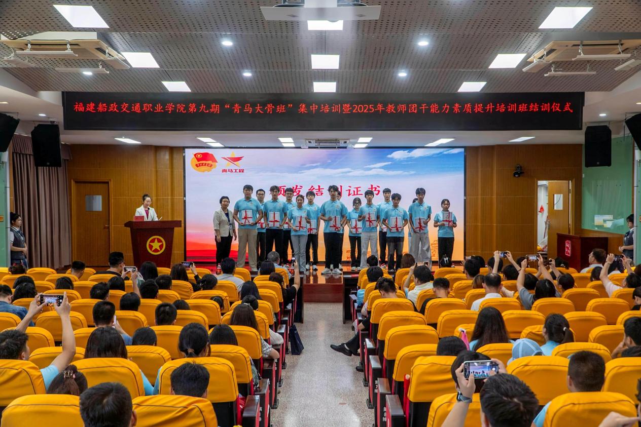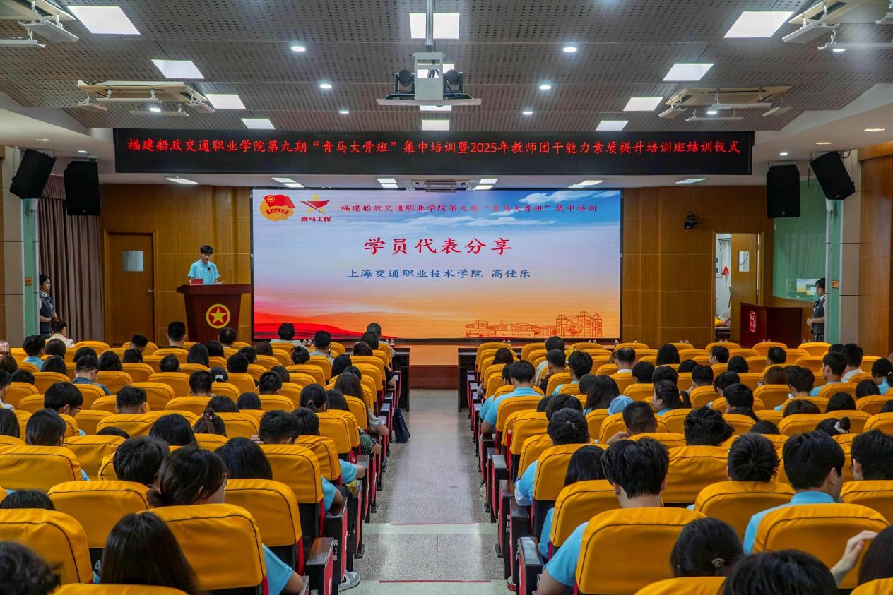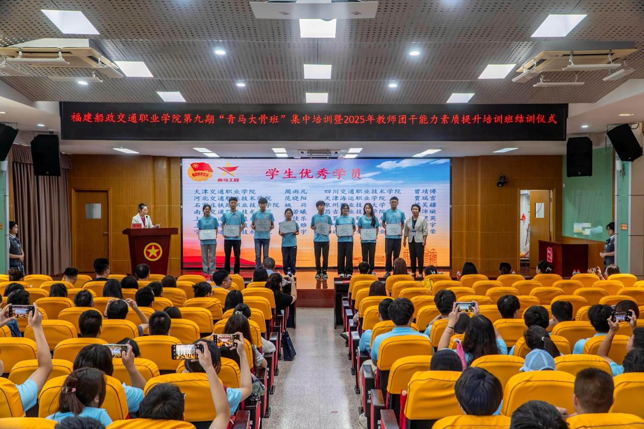 2025年7月25日上午,福建船政交通职业学院第九期“青马大骨班”集中培训结训仪式在福道园行政楼六楼学术报告厅举行。结营仪式由学院团委书记陈慧主持,上海交通职业技术学院高佳乐同学分享学习感悟。学院党委副书记张辉为学员们颁发了优秀学员证书和结训证书。