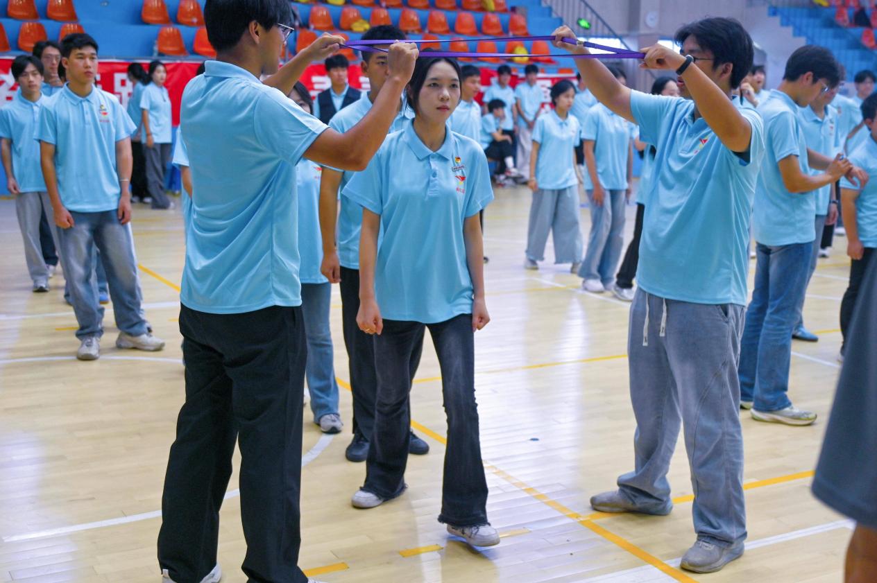 素质拓展训练在活力满满的氛围中拉开序幕。“破冰启航”快速凝聚学员,“一锤定音”“移舟过河”“团球竞速”等项目,在趣味与挑战中锤炼青马学员的决策力、协作力,快速升温团队凝聚力;“急速60秒”“卓越圈”“鼓动人心”及团队飞盘依次开展,激发了青马学员的思维活力、彰显了团结力量、传递了责任担当,学员们在互动中释放青春动能,深化了团队情谊。
