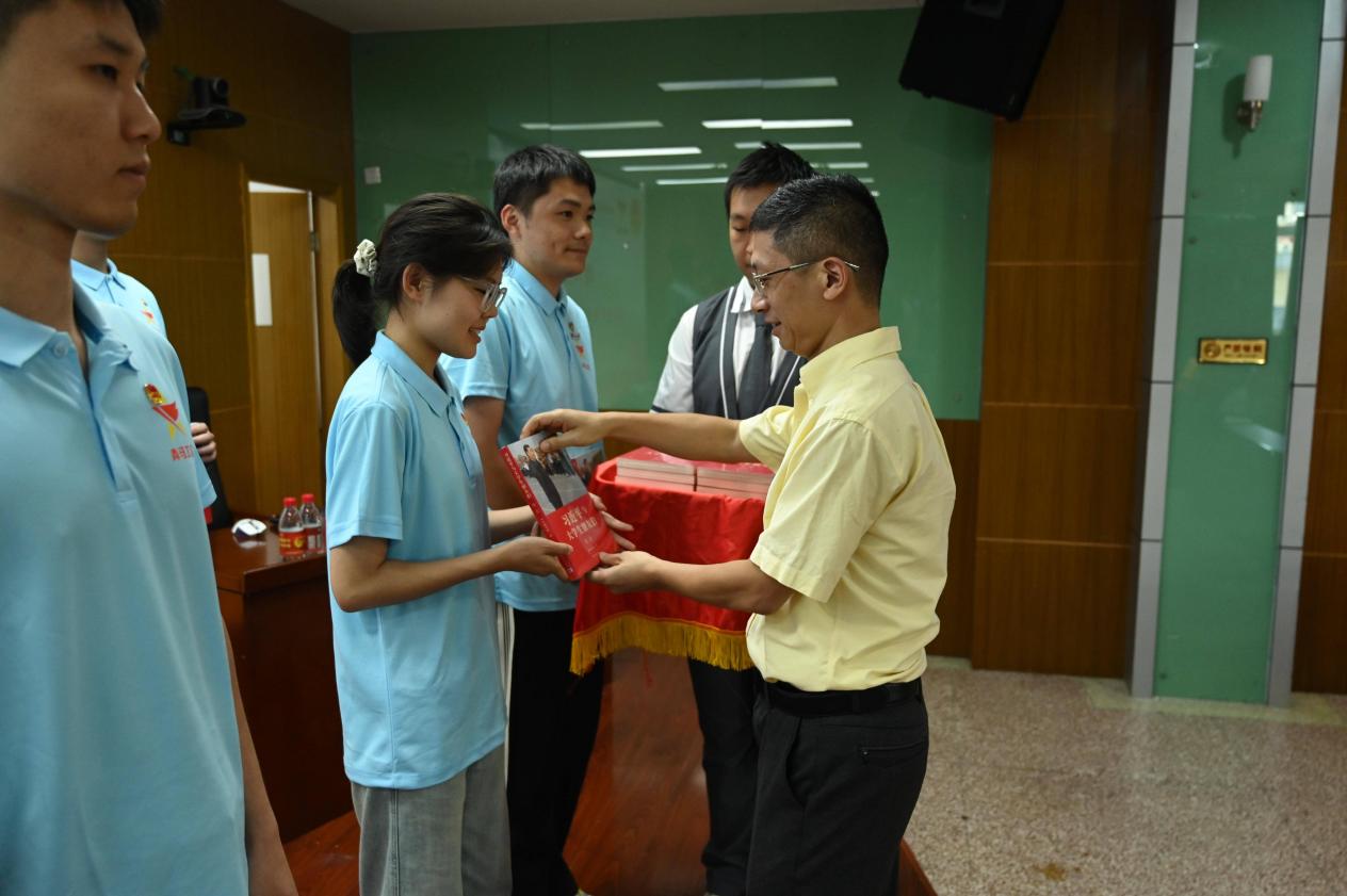 7月24日下午,学习班邀请了共青团福建省委学校部部长、省学联秘书长黄承祖老师为学员们传达全国学联二十八大会议精神。会前,他向京津冀沪+交通职业教育集团联盟校,闽疆合作共同体、闽宁合作共同体院校,以及福建省职业院校质量振兴共同体、乡村振兴共同体成员单位,以及我院第九期青马学员代表,现场赠阅图书——《习近平与大学生朋友们》(第二卷)。他希望大家通过读书,感受习近平总书记念兹在兹的青年情;更希望青马学员们通过阅读,展示我们新时代青年该有的样子。