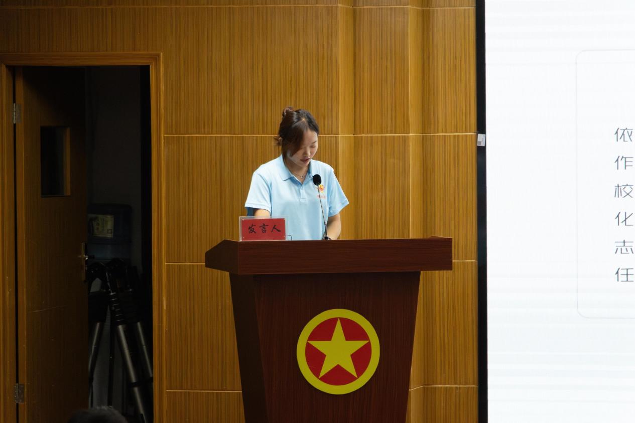 7月22日上午,开班仪式在嘹亮的国歌声中拉开帷幕。学院团委书记陈慧主持开班仪式,学院党委副书记张辉致辞,全国学联二十八大代表叶可荣同学代表学院第九期“青马大骨班”学员发言。