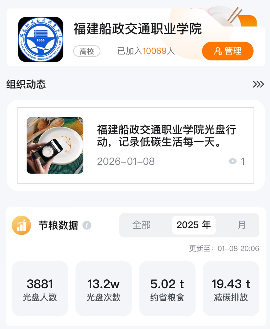 为深入贯彻落实习近平总书记关于节粮减损的重要指示精神,传承中华民族勤俭节约的优良传统,学院团委于2025年10月20日至12月28日,组织开展了“节约粮食,从我做起——光盘行动进校园”主题活动。活动以“光盘行动”官方小程序为载体,同学们在餐后通过线上拍照打卡,记录自己的“光盘”瞬间。简洁清晰的流程、积极正向的激励,让节约行为可记录、可分享、可接力。
