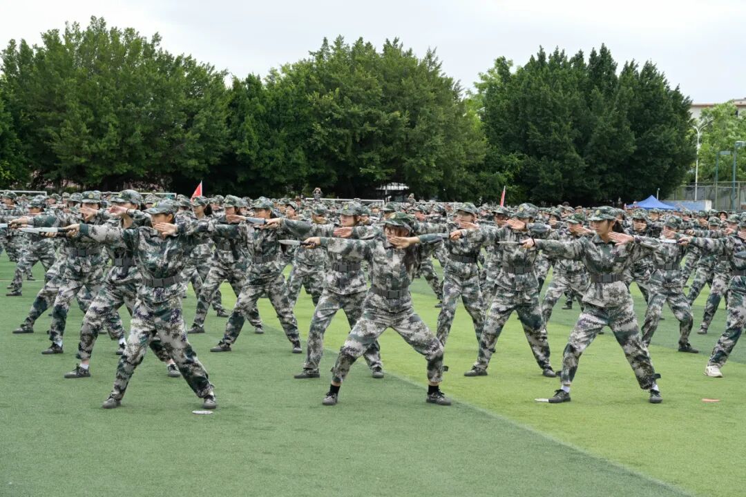 女生方阵毫不逊色,刺杀、格挡、反击一气呵成,柔美身姿藏着千钧之力,完美诠释“巾帼不让须眉”;