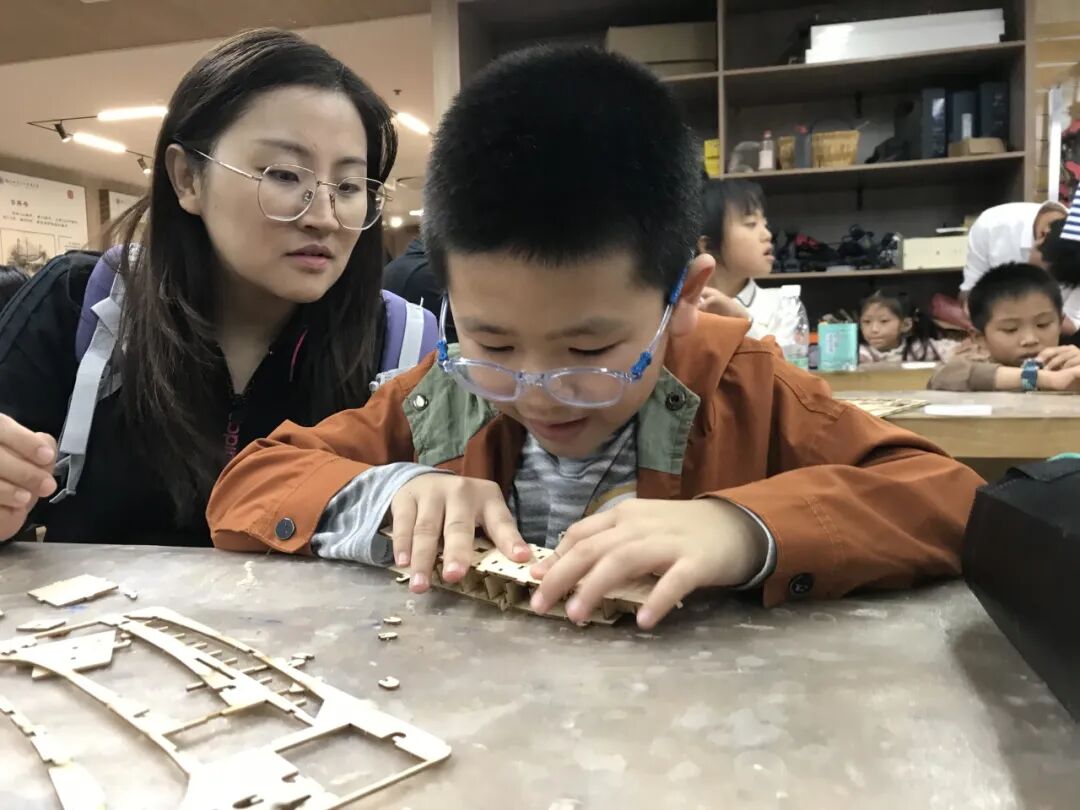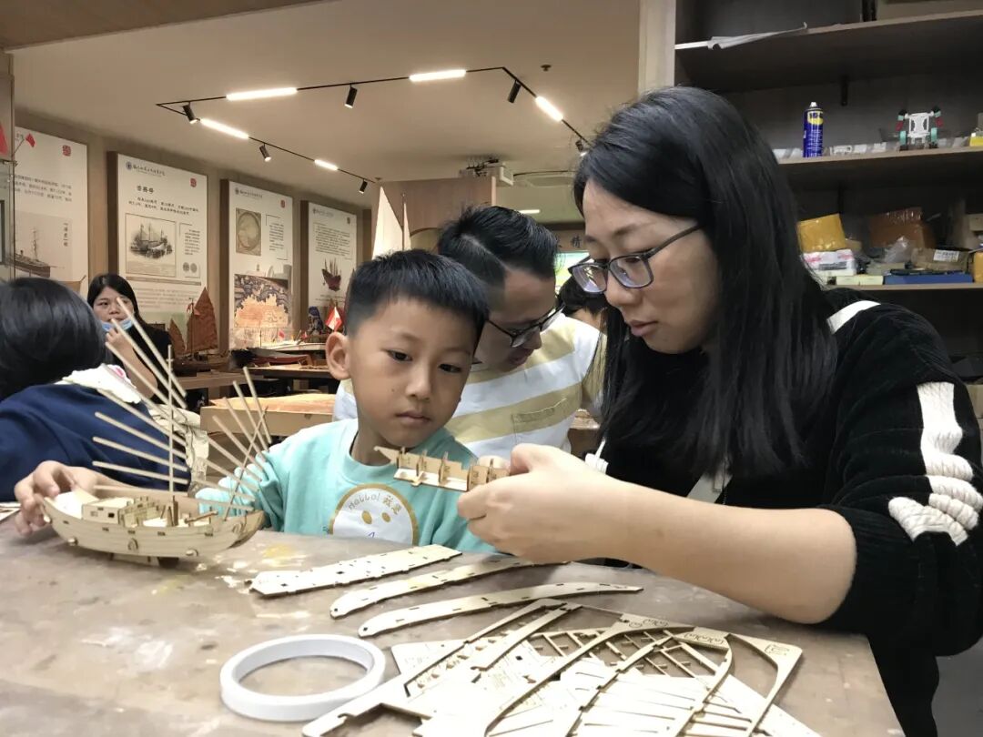心澜船社内,苍霞社区的家长和孩子们在专业老师指导下,专注投入船模制作。从木材加工起步,经切割、拼接等精细步骤,逐步搭建船模雏形。老师细致讲解龙骨搭建、船帆固定等制作要点,让孩子在实践中感知造船工艺的精妙,大家相互协作、共克难题,现场氛围热烈。船模作品的完成,既展现了协作的实操能力,也为孩子们的探索之路扬起了新的风帆。