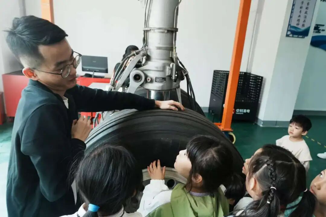 航空实训基地内,通用航空学院教师现场讲解,家长和孩子认真聆听,初步明晰飞机维修岗位的职业属性与技术标准。在老师的细致指导下,家长与孩子共同参与维修实践操作,完成相关工序,直观体验飞机维修工作的基本流程。