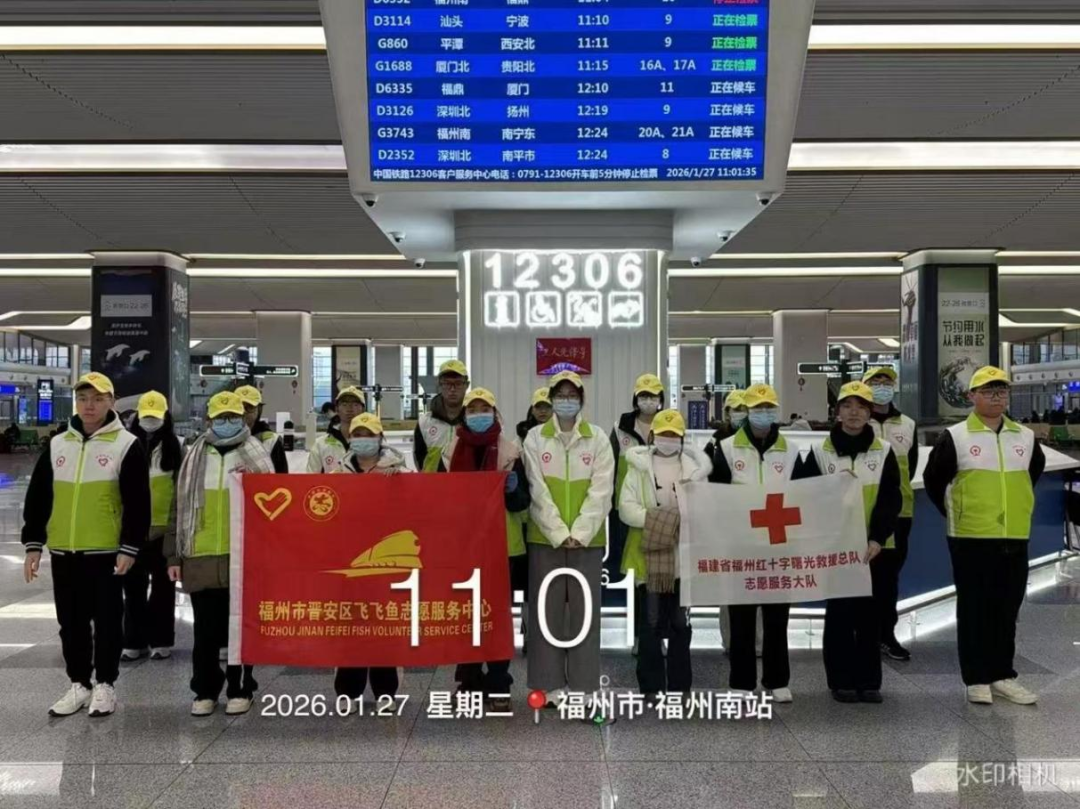 寒假期间,同学们加入福州市晋安区飞飞鱼志愿服务中心,投身车站春运志愿服务,以青春力量守护旅客出行。在车站各岗位上,同学们化身“出行导航员”,为旅客提供专业的路线指引;担任“安全守护者”,在自动扶梯旁帮扶老人、照看孩童,筑牢出行安全屏障。