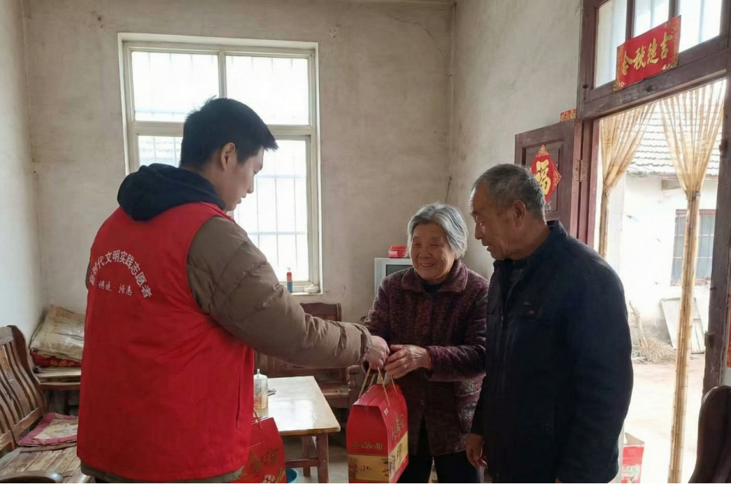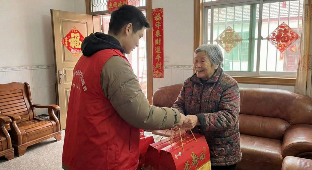 随后,同学们带着爱心物资走进社区长辈家中开展慰问。大家与老人拉家常、听新春往事,细致询问老人的身体状况与生活需求,叮嘱老人注意防寒保暖。一份份新春礼盒,一声声暖心叮嘱,让冬日小屋满溢年味与温情。从物资整理到入户慰问,同学们用双手传递新春祝福,用脚步丈量社区温度,让青春力量为社区新春增添温暖色彩。