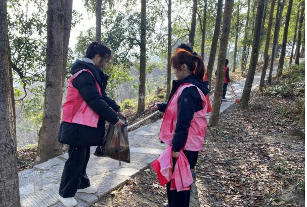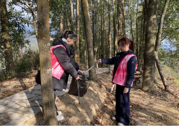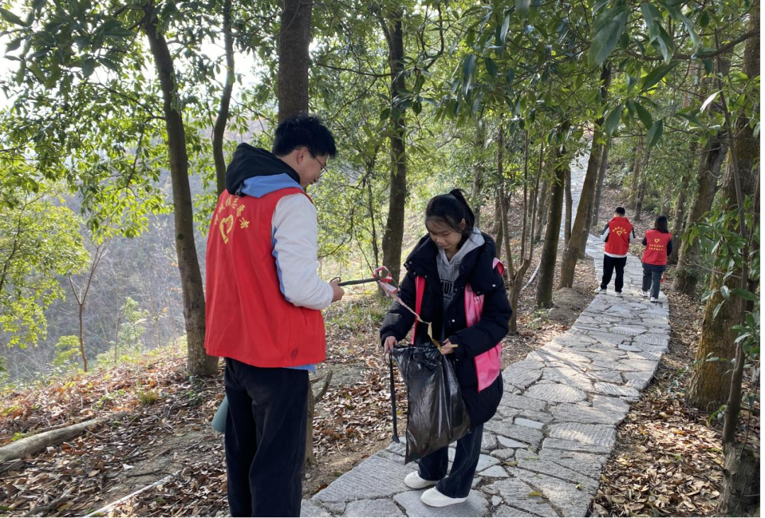 在福建省福州市永泰县樟城镇北门社区的志愿服务中,同学们走进山林步道,开展环境清洁行动。志愿者们手持工具,细致清理步道落叶、石缝中的垃圾,弯腰捡拾的身影成为山林间一道动人的风景。