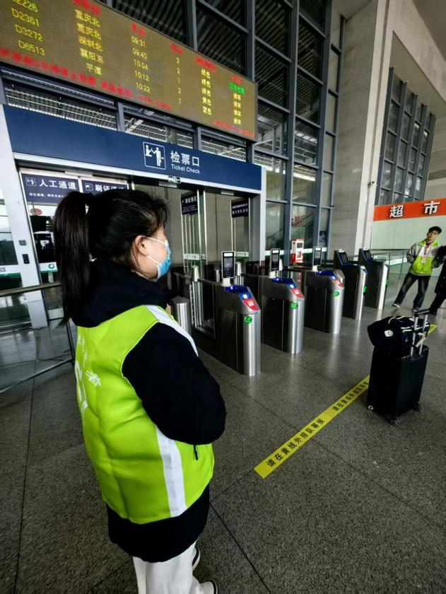 车站内人头攒动,同学们穿梭在熙攘人群中,为携带沉重行李的旅客分担负荷,在服务台为旅客递上温热清水,主动帮扶老人、孩童等群体,耐心指引路线、协助检票、维持现场秩序。每一次伸手、每一杯热水、每一句叮嘱,都凝聚着青年的责任与担当,有效消解了旅客的旅途疲惫与出行焦虑。
