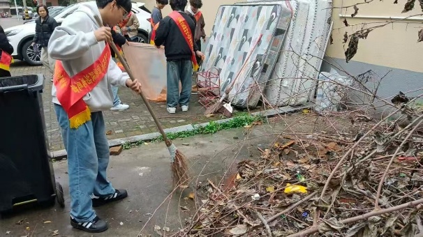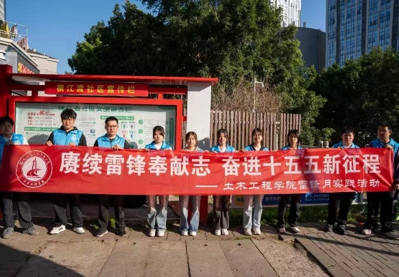 土木工程学院志愿者前往横江渡社区,开展 “赓续雷锋奉献志,奋进十五五新征程” 主题美化家园实践活动。志愿者们发放宣传资料,普及垃圾分类知识,推动绿色环保理念深入人心;同时清扫社区公共道路,用实际行动美化社区环境,为生态文明建设贡献青春力量。